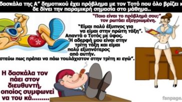 in Αστεία ANEKΔΟΤΟ: Η δασκάλα της Α” δημοτικού έχει πρόβλημα με τον Τοτό που όλο βρίζει και δε δίνει την παραμικρή σημασία στο μάθημα