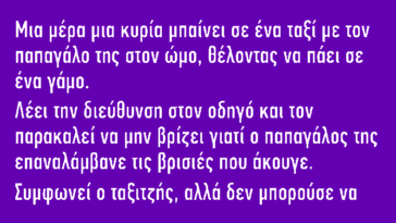 Μια μέρα μια κυρία μπαίνει σε ένα ταξί με τον παπαγάλο της στον ώμο