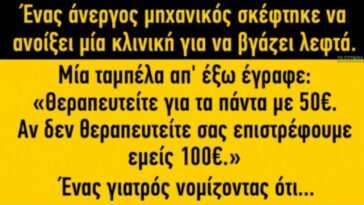 Ανέκδοτο: Ένας άνεργος μηχανικός σκέφθηκε να ανοίξει μια κλινική για να βγάζει λεφτά