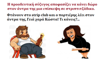 in Αστεία Ανέκδοτο: Προοδευτική σύζυγος αποφασίζει να κάνει δώρο στον άντρα της μια επίσκεψη σε στριπτιτζάδικο