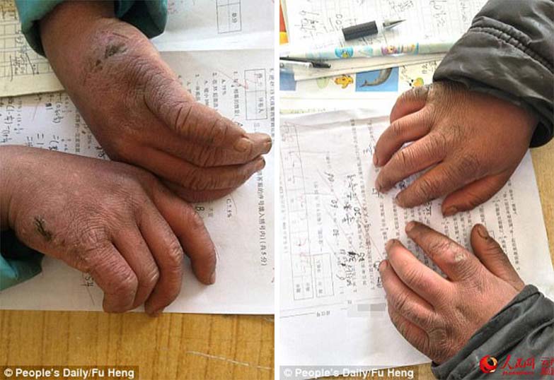 Ο Γουάνγκ έχει κρυοπαγήματα στα χέρια του, αφού πρέπει να βοηθάει την γιαγιά του σε αγροτικές εργασίες.
