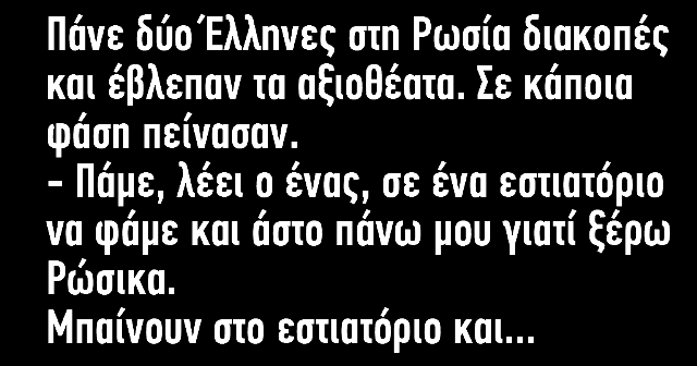 “Πάμε λέει ο ένας σε ένα εστιατόριο να φάμε,άστο πάνω μου γιατί ξέρω Ρώσικα”.
