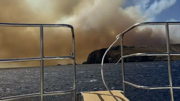 Όταν η φωτιά πλησίαζε απειλητικά, πολλοί πολίτες βρέθηκαν χωρίς διέξοδο. Ο καπετάν Σπύρος, χωρίς δεύτερη σκέψη, άνοιξε το σκάφος του και μετέφερε δεκάδες ανθρώπους σε ασφαλές σημείο. Η υπερφόρτωση ήταν αναπόφευκτη: το Glass Bottom υπέστη σοβαρές ζημιές, με το κόστος επισκευής να εκτιμάται σε περίπου 75.000 ευρώ. Έτσι, το σκάφος τέθηκε εκτός λειτουργίας, αφήνοντας ένα μεγάλο κενό στις θαλάσσιες υπηρεσίες του νησιού.