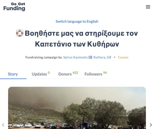 Μπροστά σε αυτή την κατάσταση, φίλοι και κάτοικοι του νησιού ξεκίνησαν πριν λίγες ημέρες μια διαδικτυακή καμπάνια στήριξης μέσω της πλατφόρμας GoGetFunding. Το αποτέλεσμα ξεπέρασε κάθε προσδοκία: μέχρι και σήμερα, Δευτέρα 18 Αυγούστου, το ποσό έχει ήδη ξεπεράσει τις 23.000 ευρώ, με περισσότερους από 300 δωρητές να συμβάλλουν στον στόχο των 75.000 ευρώ.