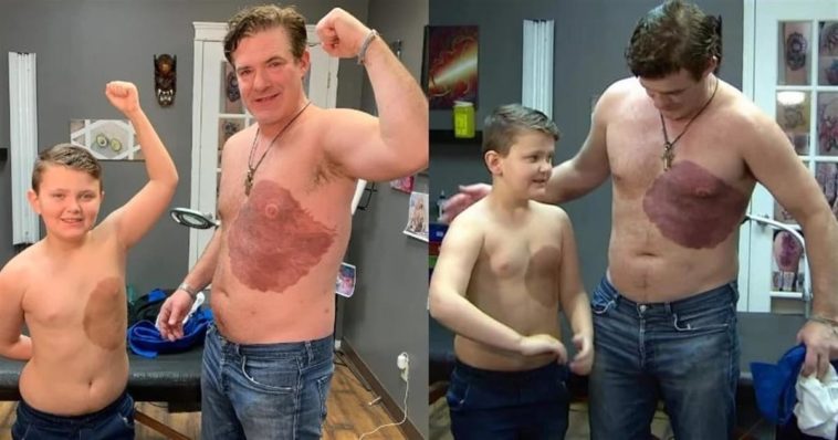 Τατουάζ από μπαμπά: O Derek Prue δέχθηκε τη βελόνα του τατουάζ να τον σημαδεύει για περίπου τριάντα ώρες. Ο σκοπός, όμως, ήταν πολύ σοβαρός για τον ίδιο και την οικογένειά του. Ο γιος του είχε ένα σημάδι και ήθελε να κάνει ένα παρόμοιο για να αποκτήσει αυτοπεποίθηση, το παιδί του.Με τον καλύτερο δυνατό τρόπο, επέλεξε να βοηθήσει τον γιο του να αποβάλει την δυσαρέσκεια που του γέμιζε το εκ γενετής .