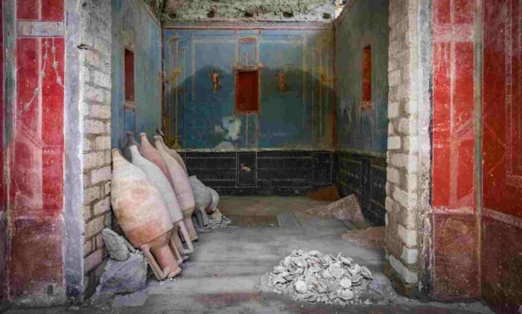 Ένα περίπλοκα διακοσμημένο μπλε δωμάτιο ανακάλυψαν οι αρχαιολόγοι, κατά τη διάρκεια πρόσφατων ανασκαφών στην κεντρική Πομπηία στην Ιταλία, το οποίο ερμηνεύεται ως αρχαίο ρωμαϊκό ιερό.