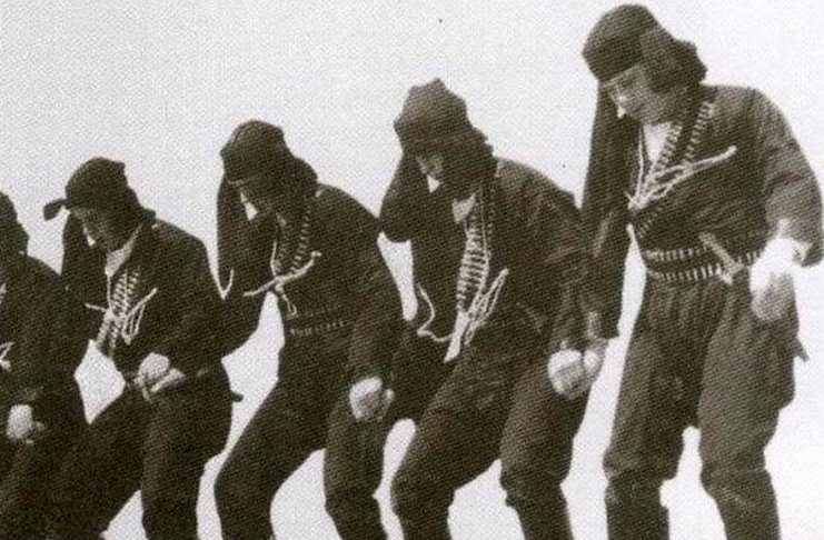 Πυρρίχιος: Ο πολεμικός χορός των αρχαίων Ελλήνων που χορεύουν οι Πόντιοι οπλισμένοι και ντυμένοι με μαύρα ρούχα.