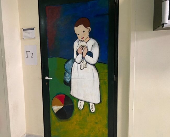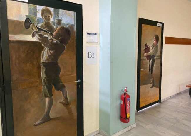 Πήραν στα χέρια τους πινέλα και χρώματα και μετέτρεψαν το σχολείο τους σε γκαλερί υψηλού επιπέδου. Τα «Μπλε Πουλιά» του Αλέκου Φασιανού, «Το παιδί με το περιστέρι» του Πάμπλο Πικάσο και ακόμα 18 γνωστά έργα τέχνης Ελλήνων και ξένων καλλιτεχνών, που φιλοτέχνησαν έξι μαθητές στις πόρτες των αιθουσών διδασκαλίας, άλλαξαν με μοναδικό και καλαίσθητο τρόπο την εικόνα του 9ου Γυμνασίου Καλαμαριάς.