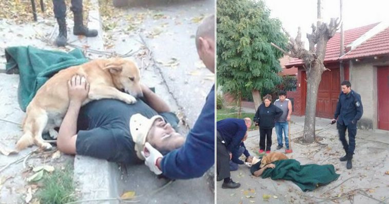 Ενώ οι υπεύθυνοι τοποθετούσαν κολάρο στο λαιμό του άνδρα και πρόσφεραν τη βοήθειά τους, ο σκύλος συνέχισε να αγκαλιάζει το αφεντικό του και αρνήθηκε να το αφήσει.