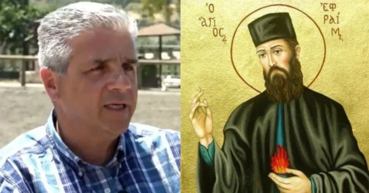 «Το θαύμα που βίωσα με τον Άγιο Εφραίμ ήταν το κλικ που μου άλλαξε το ζωή. Είχα έναν πόνο στην πλάτη και θεώρησα ότι ήταν καρδιά. Ο γιατρός με εξέτασε και μου είπε ότι όλα είναι τέλεια. Έκανα γαστροσκόπηση και έδειξε καρκινικό όγκο, ευτυχώς ήταν επιφανειακός. Εκεί μουδιάζεις, σταματάει ο κόσμος. Πήγαμε με τη σύζυγό μου στον Άγιο Εφραίμ, για μένα δεν είναι άγιος είναι φίλος μου. Έβαλα το βαμβάκι με το λαδάκι πάνω στο σημείο που θα γινόταν η επέμβαση και ξαφνικά στο δωμάτιο άρχισε να μυρίζει μύρο. Η Ηγουμένη μου είπε ότι με μύρο εμφανίζεται ο Άγιος. Αυτό που με προβλημάτισε είναι γιατί διάλεξε να εμφανιστεί σε μένα ο Άγιος Εφραίμ» εξομολογήθηκε ο δημοσιογράφος.
