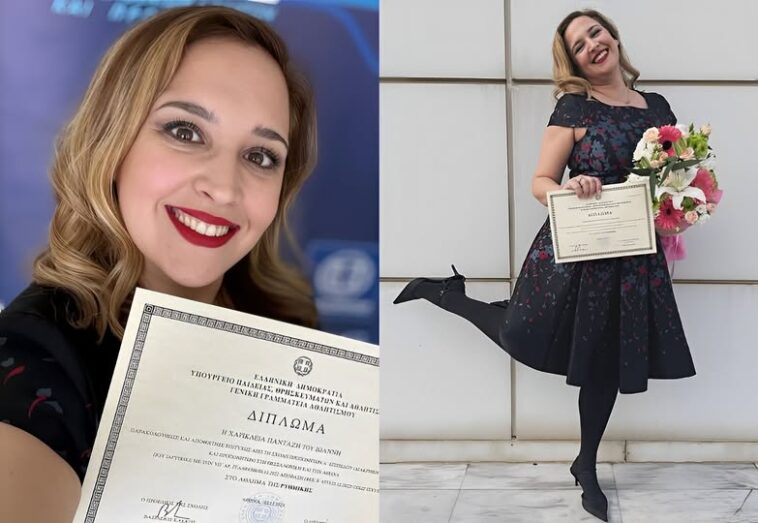 Η ίδια δηλώνει πλέον πτυχιούχα για δεύτερη φορά, ενώ, σήμερα παρευρέθηκε στο Υπουργείο Πολιτισμού και Θρησκευμάτων για να το παραλάβει.