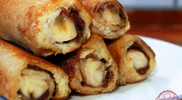 Πανεύκολα τηγανιτά ρολάκια με Nutella, Μπανάνα και Ψωμί του Τοστ!!