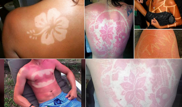 Για να δημιουργήσουν το αποτέλεσμα που βλέπετε στις φωτογραφίες, όσοι θέλουν να πετύχουν ένα τατουάζ από ήλιο απλώνουν αντηλιακό ή αυτοκόλλητα στο σχέδιο που θέλουν και αφήνουν το απροστάτευτο δέρμα κυριολεκτικά να καεί στον ήλιο.