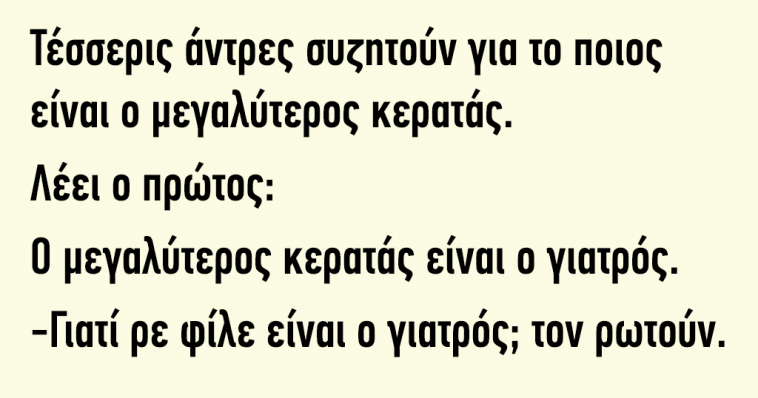 Ο μεγαλύτερος κερατάς είναι ο γιατρός. -Γιατί ρε φίλε είναι ο γιατρός; τον ρωτούν.