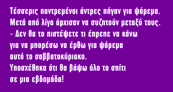 Τέσσερις παντρεμένοι άντρες πήγαν για φόρεμα. Μετά από λίγο άρχισαν να συζητούν μεταξύ τους.