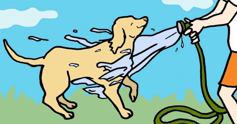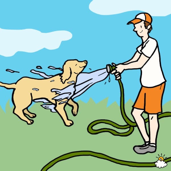 Το να βρέξετε τον σκύλο σας με το λάστιχο νερού θα βοηθήσει στην μείωση της θερμοκρασίας του σώματος του σκύλου σας.