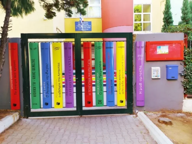 Η βιβλιοθήκη -είσοδος του σχολείου με τα σπουδαιότερα βιβλία της παιδικής λογοτεχνίας