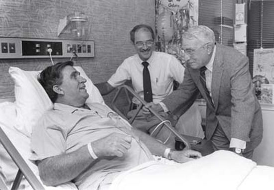 Ο Ράνταλ Τσάμπιον στο νοσοκομείο μετά τη δεύτερη ηλεκτροπληξία. Δίπλα του είναι ο σωτήρας του, Τζέι Ντι Τόμσον. …