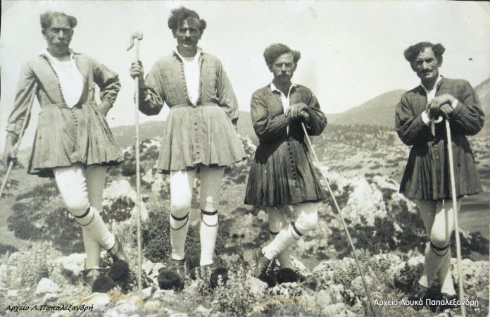 Τσαρούχια (τα): Αυτοσχέδια παπούτσια από το δέρμα ζώων με φούντα μπροστά.