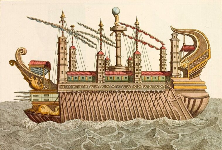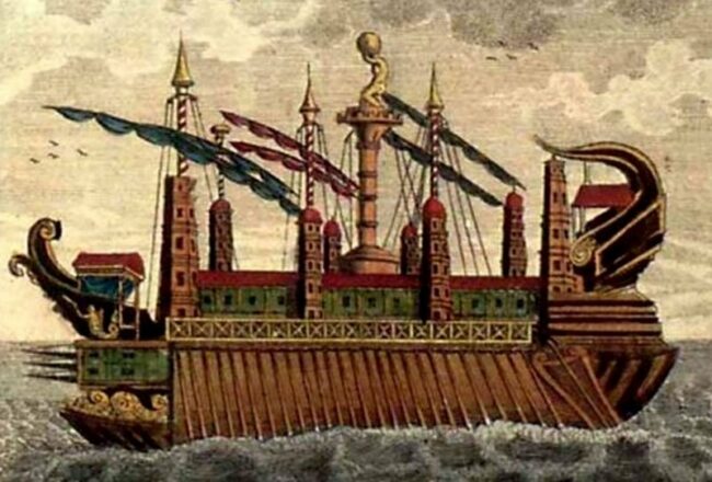 Το πρώτο κρουαζιερόπλοιο της αρχαιότητας διέθετε κήπο, ενυδρείο, γυμναστήριο, λουτρά με ζεστό νερό, ναό και βιβλιοθήκη.