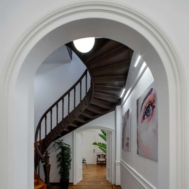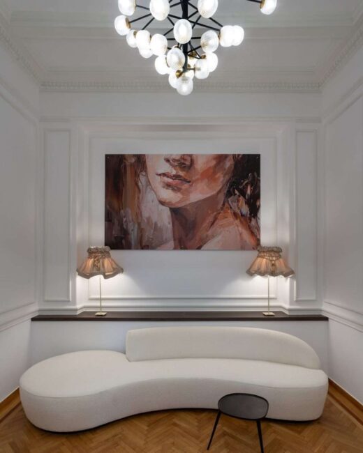 Συνδυάζοντας αρμονικά το παρελθόν με το παρόν, στοιχεία minimal design με σύγχρονη αισθητική γίνονται ένα με τα αυθεντικά στοιχεία του κτιρίου που έχουν διατηρηθεί, όπως η υπέροχη μαρμάρινη σκάλα, τα διακοσμητικά της οροφής, τα δάπεδα και οι τοίχοι σε ορισμένους εσωτερικούς χώρους.