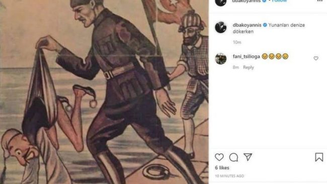 Κάτω από τις αναρτήσεις της κυρίας Μπακογιάννη υπάρχουν εκατοντάδες σχόλια από Τούρκους οι οποίοι αποθεώνουν τον Κεμάλ και βρίζουν χυδαία τη Χώρα μας. Σύμφωνα με πληροφορίες ο λογαριασμός της κυρίας Μπακογιάνη ελέγχεται από τις αρμόδιες Αρχές και σύντομα οι εικόνες του σφαγέα Κεμάλ Ατατούρκ θα «κατέβουν» από το προφίλ της πρώην υπουργού.