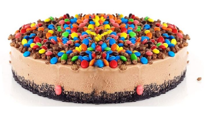 - Περίπου 10-15 λ πριν τη σερβίρετε βγάζετε τη τούρτα σας να μαλακώσει ελαφρώς και τη διακοσμείτε στρώνοντας στην επιφάνεια της τούρτας τα Coco Pops και τα mini M&M, τη κόβετε σε κομμάτια και γαρνίρετε.