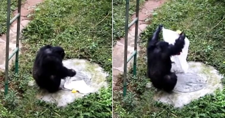 Στο σύντομο αυτό βίντεο, ο συμπαθής χιμπατζής φαίνεται να πλένει ένα κίτρινο μπλουζάκι με τον κατάλληλο τρόπο. Αρχικά άπλωσε το ρούχο με τα χέρια του, στη συνέχεια πήρε το σαπούνι που ήταν βουτηγμένο στο νερό και ξεκίνησε τη λάντζα. Μάλιστα, αφού πρώτα έτριψε το ύφασμα, στη συνέχεια χρησιμοποίησε το νερό για να το ξεπλύνει.