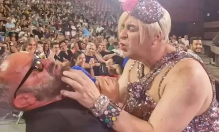 Ο ηθοποιός πλησίασε τον παρουσιαστή και έδωσε σόου, με τον κόσμο να γελάει και να χειροκροτεί. Όλα αυτά στον απόηχο των αντιδράσεων για τον κωμικό, που επικρίθηκε για ομοφοβικά αστεία και πιο συγκεκριμένα ότι ειρωνεύεται τα non-binary άτομα.