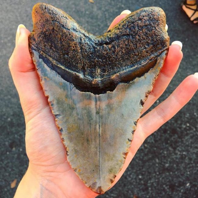 Ο Denny είχε την τύχη να βρει το τέλειο δείγμα στην παραλία. To δόντι μήκους 15 εκατοστών ανήκε σε ενήλικο καρχαρία και είναι τόσο μεγάλο που δεν χωράει στο χέρι του. «Ένιωσα λες και κέρδισα το λαχείο. Λες και είμαι ο πρώτος που το αγγίζει από τότε που βρισκόταν μέσα στο στόμα του.»