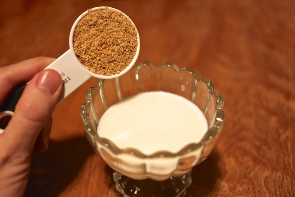 - 2 κουταλιές της σούπας αλεύρι λιναρόσπορου και αναμείξτε το με 100 ml *κεφίρ